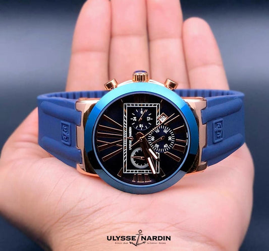 Ulysse Nardin 2536 Silicon Chronograph Blue Banded Formal Men's Watch With Blue Dial With Gold Case Best Gift for Men's UN-2536 UN-2536