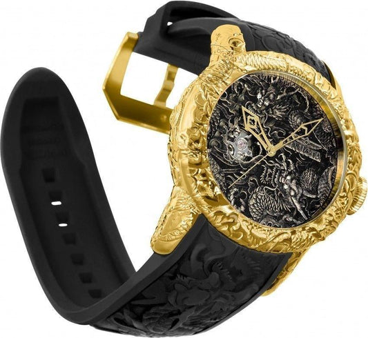 Invicta Mens S1 Rally 25082 Yakuza Black & Golden Silicon Strap Watch For Man Dragon Design Black Dial- Best Gift S1-25082