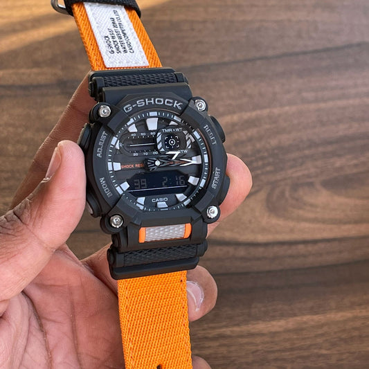Casio G-Shock Analog-Digital Black Dial Men's Watch-GA-900C-1A4DR (G1049) Orange Resin Band With Black Case Men Sports Watch