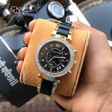 Black Gold Multicolour Strap Diamand Tone Stainless Steel Chronograph Women's Watch For Girl Or Woman MK-6414 Best Gift Watch