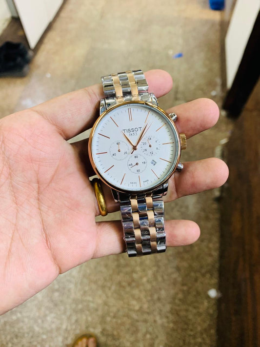 Tissot Carson Premium Chronograph White Dial New Stylish Multi Color Branded Men's Watch - Genuine Gift For Men's T-10119271104100