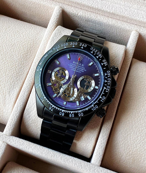 RLX-DYN Stainless Steel mechanical Chronograph Blue Dial and Luxury Black Stainless steel Watch For Men's Formal Look WatchRLX-DYN-7632