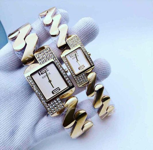 Zigzag Wrist Watches With Diamond Case For Couples Gold Color Strap And Black Dial Watch For Couple-Best Gift watch For Couples GC-5299