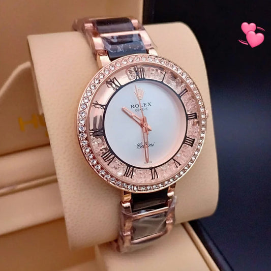 Black Gold Stainless Steel Strap Watch For Women With Diamond White Dial RLX-7919