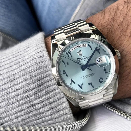 Rolex Platinum. Arabic Calendar Wristwatch In submarine Blue With Eastern Arabic Numerals And Bracelet Quartz Watch For Men's RLX-GX77