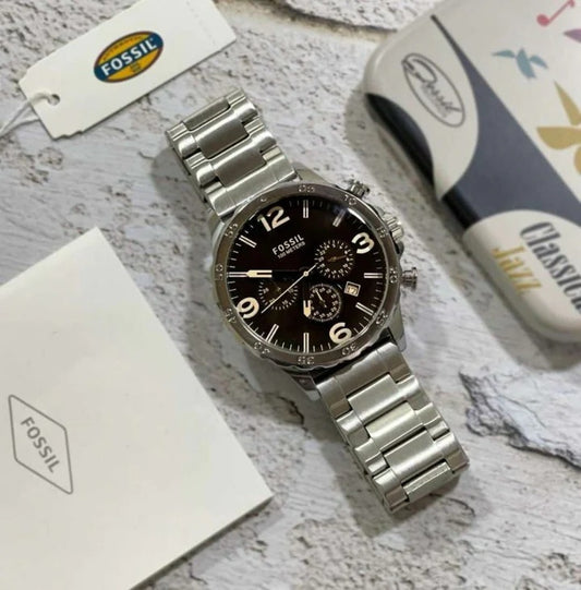 Fossil Chronograph Black Dated Watch For Men's With Stainless steel Strap- Best formal Dress Look Watch FS-1437