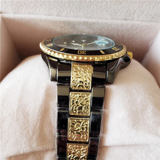 ROLEX hand-Engraved Oyster Perpetual Submarine Model Gold Strap And Black Dial Dated Watch For Men's RLX-SUB-6206