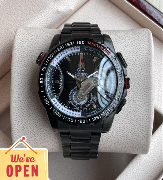 Tagheuer GRAND CARRERA Black Chronograph Black and Black Dial Metal Strap Dated Watch For Men's TAG-58748