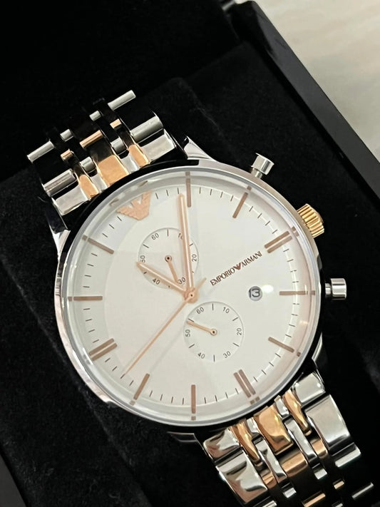 Emporio Armani Chronograph Silver and Gold tone Strap men's Watch For Men AR-1792 Gift Best watch