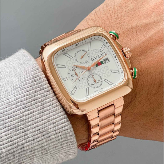 GC Chronograph Rose Gold Color Strap Men's Watch For Man White Dial Date Gift Watch GC-6892