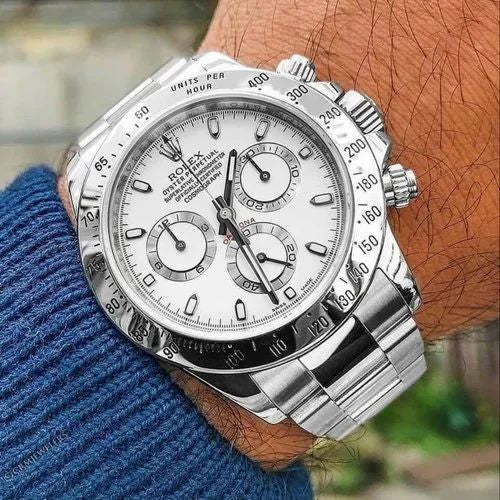 Chronograph Automatic Silver Strap Men's Watch RLX-SILV-003 White Dial