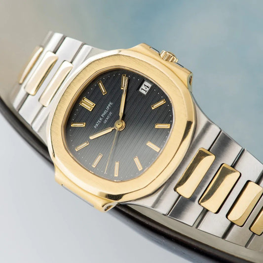 Patek Philippe Nautilus Mad Watch Quartz Movement Black Dial Silver And Gold Strap Dated Watch For Men's-Best Men's Collection PP-3573