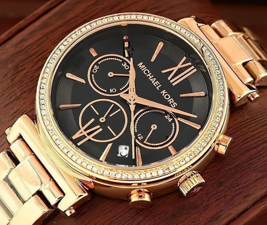 Chronograph Rose Gold Strap Women's Watch for Girl or Women Black Dial MK-9289 (Copy)