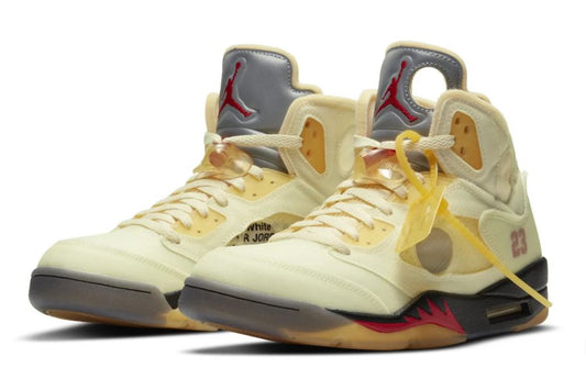 Nike Off-White x Air Jordan 5 SP Sail Fire Red Muslin Black Shoes For Men DH8565-100