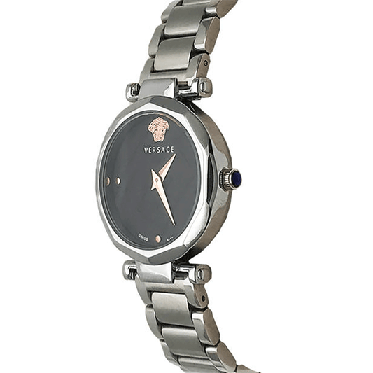 Silver Color Steel Strap New Stylish Branded Women's Watch For Women And Girls Black Dial Ver-911