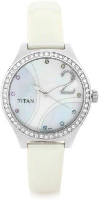 Titan Multi Color Dial Watch For women's 9744SL03 With Diamond Case White Leather Gift Watch For Woman
