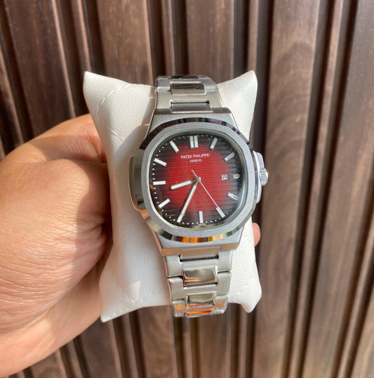 Silver Strap Maroon Red Dial Nautilus Perpetual Calendar PP-MAROON
