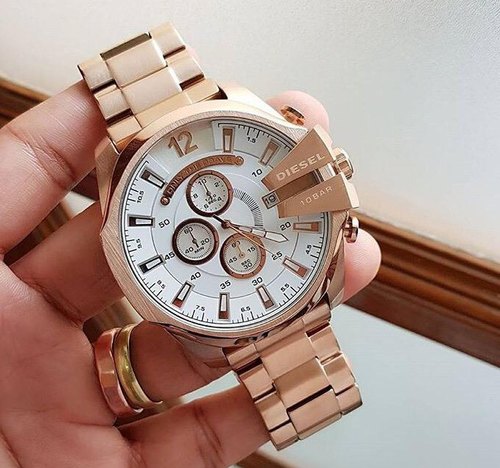 Diesel Mega Chief Chronograph Full Rose Gold White Dial Men's Watch For Man DZ-10064 Gift
