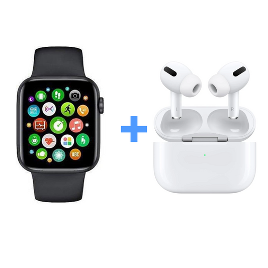 Apple Air Pods for Iphone or Android With White Color & Black Smart Watch, The Pinnacle of Innovation with Unmatched Features