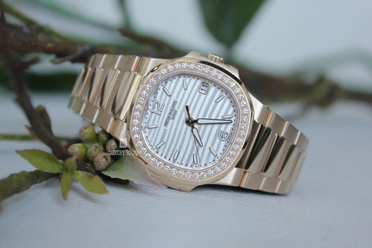 Patek Philippe Nautilus Diamond Bezel White Dial Rose Gold Strap Mad Watch Quartz Movement Dated Watch For Men's-Best Men's Collection PK-2135