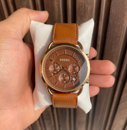 Fossil Chronograph Leather Strap Watch for Men's With Brown Dial FS-05017 Men's Watch for Gifts