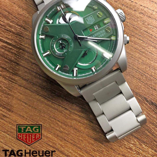 Tag Heuer Grand Carrera Cr7 1887 Green Chronograph Multi Dial Stainless Steel Th-Slv-Grn Men's Watch For Man - Gift