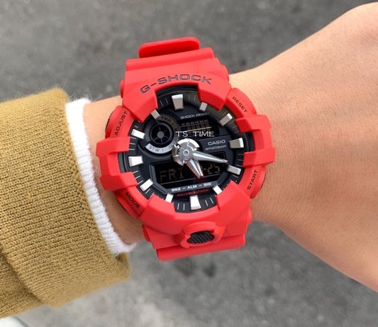 Casio G-Shock Analog Digital Red Belt Men's Watch For Man With Black Dial Gift Watch G716
