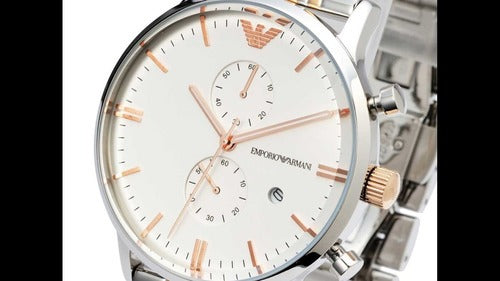 Emporio Armani Chronograph Silver and Gold tone Strap Date men's Watch For Men With White Dial AR1722 Gift Best watch
