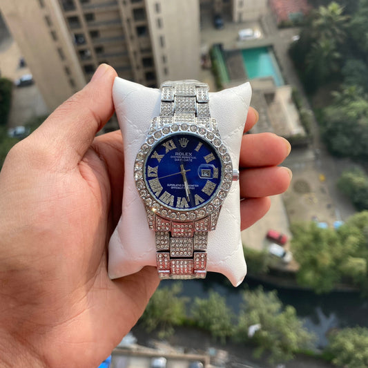 Analog Diamond Set Silver Watch/ Blue Dial Royal Stainless Steel RLX-8084