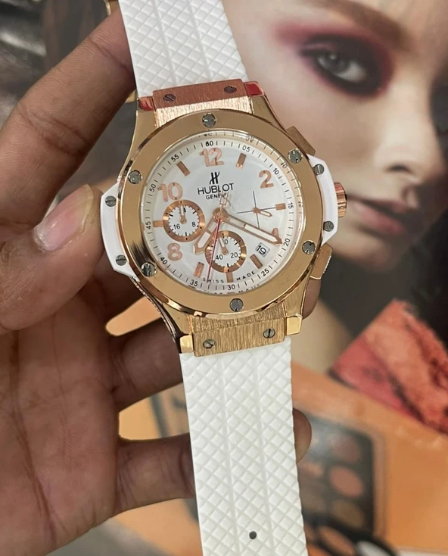 Hublot White & gold Dial Mens Chronograph Watch Classic Fusion White Leather Watch For Man HB-GR-23