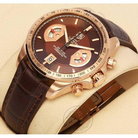 Tag Heuer CR7 Diagno Brown Chronograph Multi Dial Leather Mens Watch TAG-CAR1229 Watch for Man - Gift