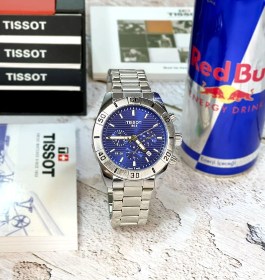 Tissot Chronograph Men's Watch Silver Metal Case Blue Dial Formal Casual Dated Watch for Men's TS-SB-3964