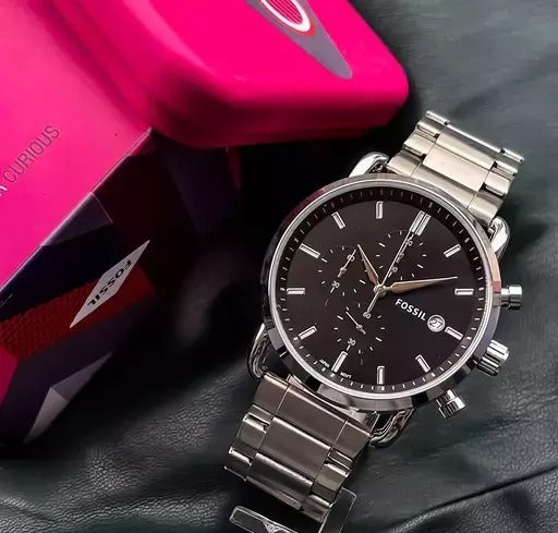 Fossil Silver Stainless Steel Strap Watch For Mens FS-S-BLACK Design Black Dial For Man Best Gift Date Watch