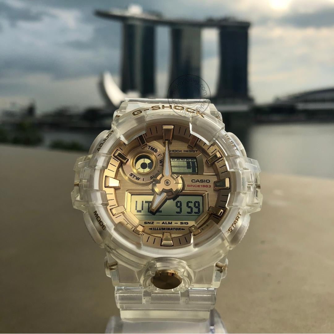 Casio G-shock Analog Digital Transparent Belt Men's Watch For Man GA-735E-7A Glacier Gold Dial Day And Date Gift Watch Shock