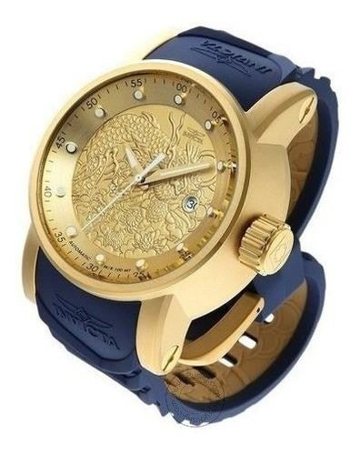 Invicta Mens 18215 S1 Rally Yakuza Blue Silicon Strap Watch For Man Dragon Design Golden Dial- Best Gift