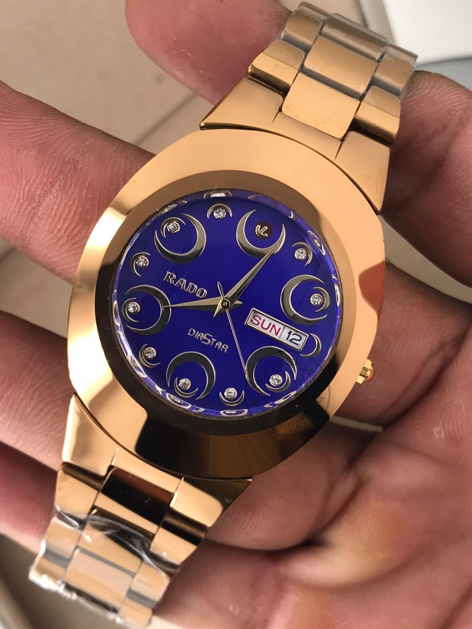 RADO Diastar Day-Date Blue dial With Gold Strip Mens Watch Gift R1244